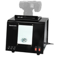 Designed for use at home, in the workshop or wherever digital photos are needed, the Gesswein Photo Imaging box offers a controlled lighting atmosphere to produce the highest quality digital photos. Your jewelry will jump out and sell themselves! Whether you need photos for advertising, catalogs, website or logging repair intake; natural wrap-around lighting is the key to bringing out the best in all your images thus bringing in sales. Easy to use, one rocker switch controls fluorescent lights (5000°K +/-10%) located in the front, base and back panels while another rocker switch controls the super bright LED light panel located at the top/front of the interior of the lightbox. Light banks: 2-Front, 1-Base, 1-Back Color Temp: 5000K (+/- 10%)