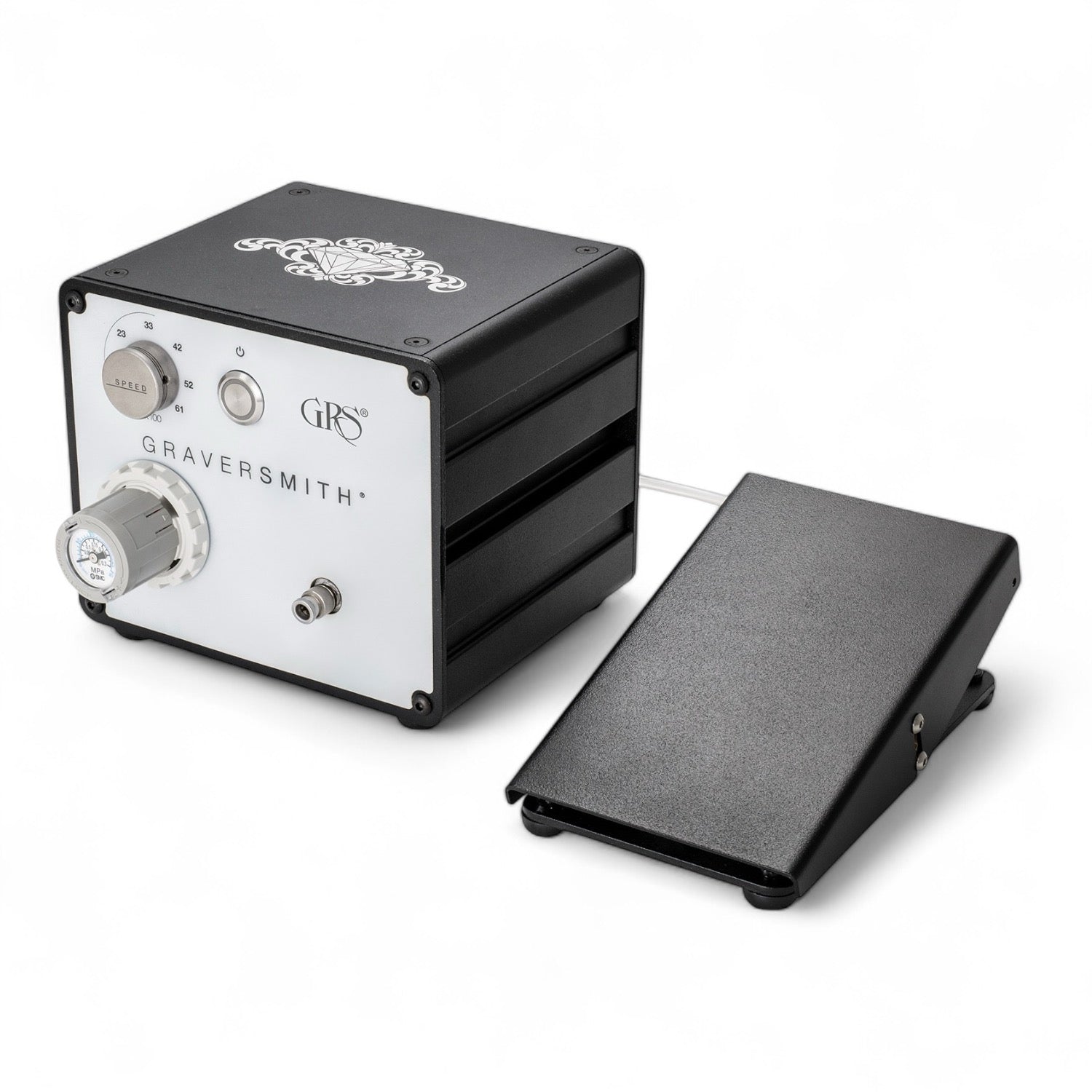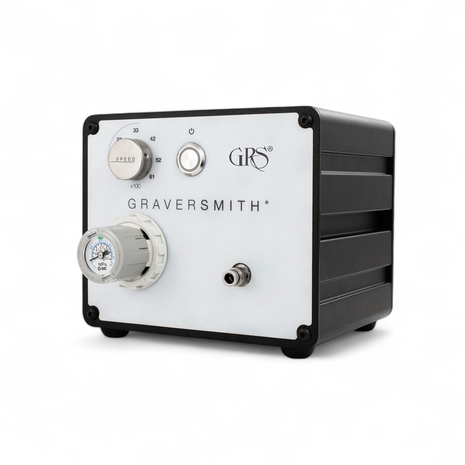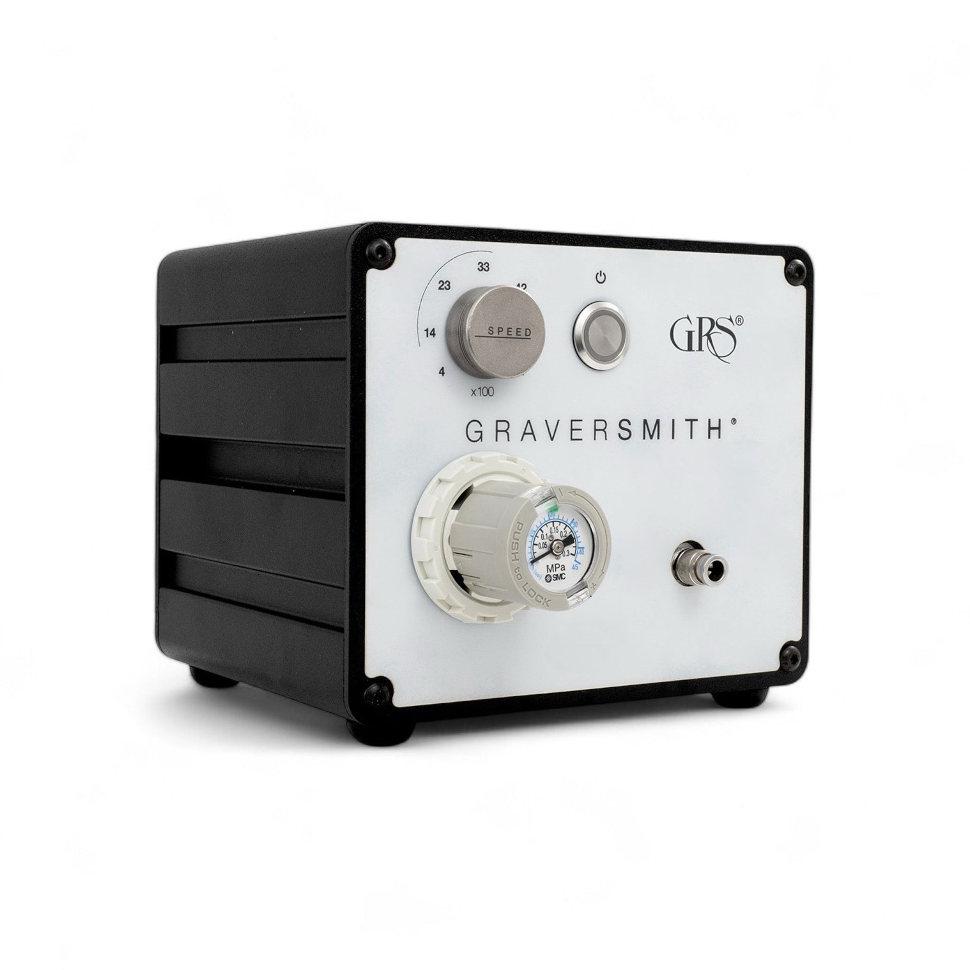 The GRS® GraverSmith air system delivers dependable performance and precision for professional artisans and manufacturers, ensuring seamless operation for a variety of engraving and stone-setting applications.