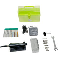 TheULTRAMAX® Mini Ultrasonic Polishing System comes with a mirror-like finishcarbide burnishing tip that effortlessly glides across the metal surface. Theergonomically designed handpiece operates in a continuous mode with a constant,almost imperceptible impact governed by the Variable Rheostat dial.  Thereis very little vibration transmitted through the compact handpiece so it can beused comfortably for long periods of time. Portability in your shop is simplewith the mounted folding carrying handle on a sturdy metal housing which protects the electronics and provides years of continuous use. Controller backed by a one-year manufacturer's warranty.
